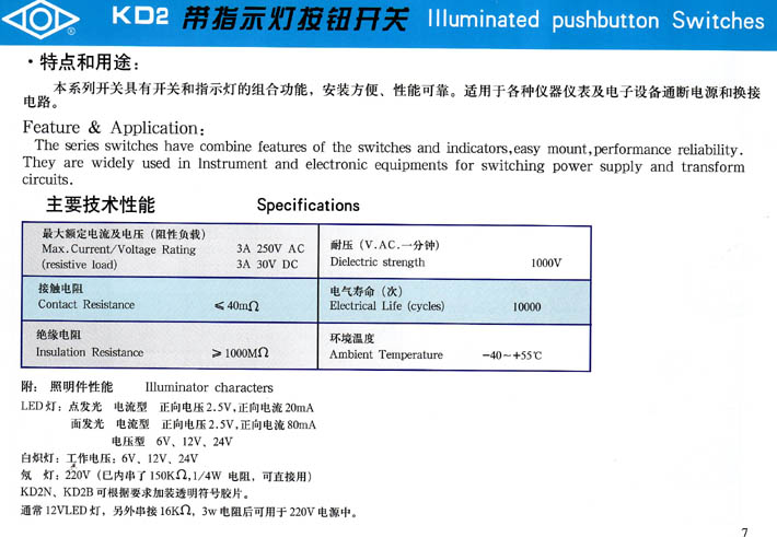 • KD2系列帶燈按鈕開(kāi)關(guān) 產(chǎn)品型號(hào):KD2系列帶燈按鈕開(kāi)關(guān)